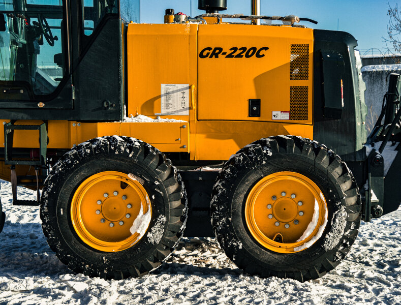 Автогрейдер для различных задач по дорожному строительству, земельным и сельскохозяйственным работам (очистка участков от снега, природного или бытового мусора, выравнивание и сооружение небольших траншей или насыпей).
