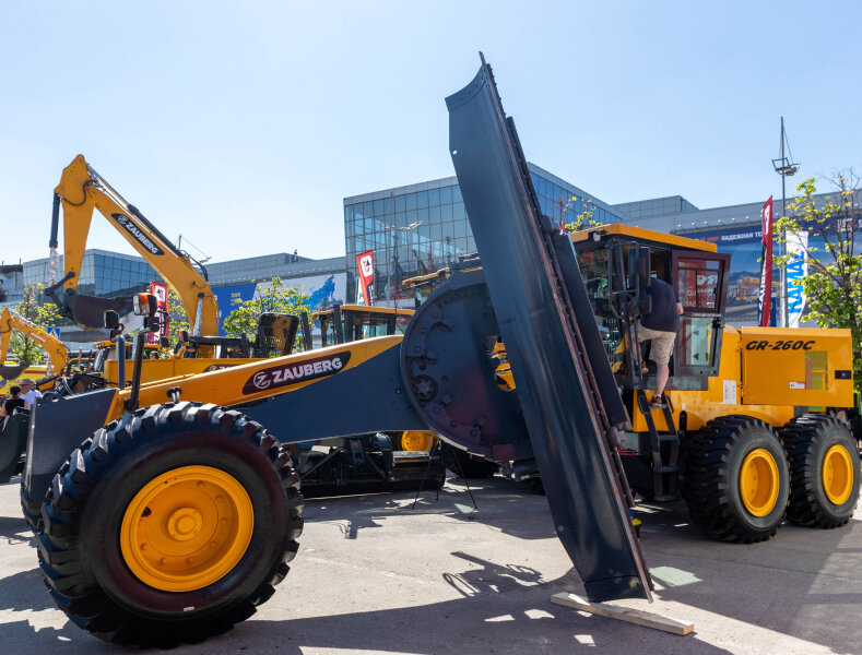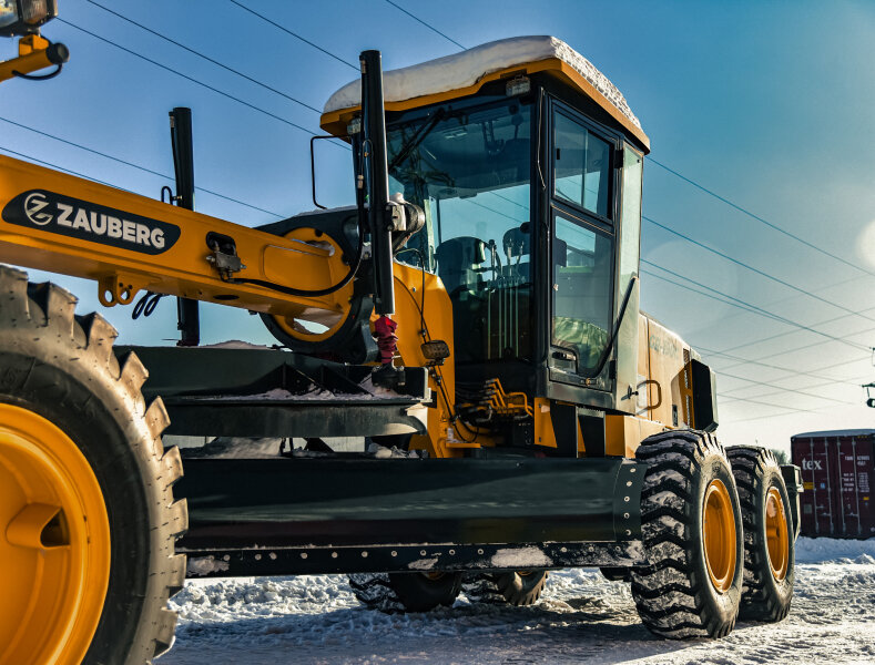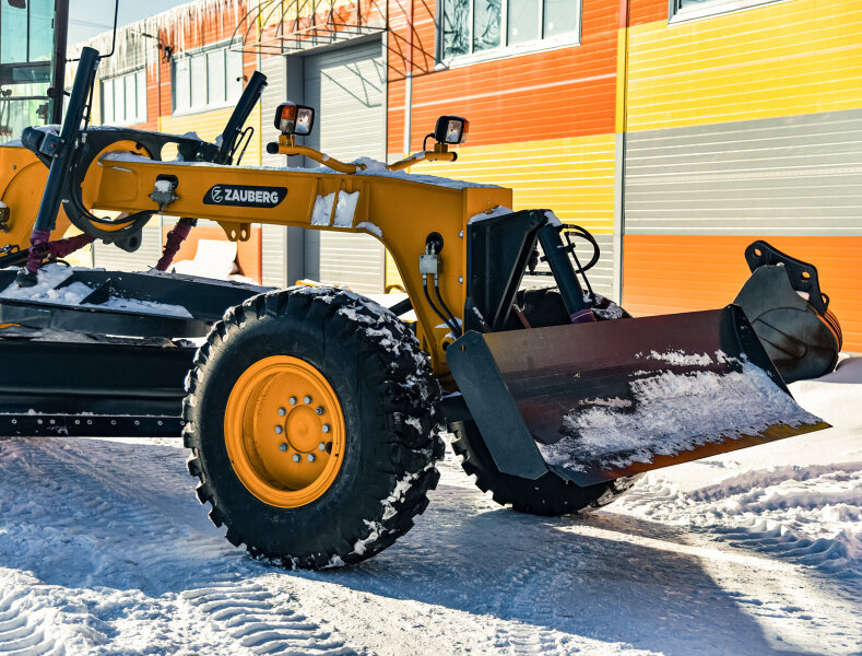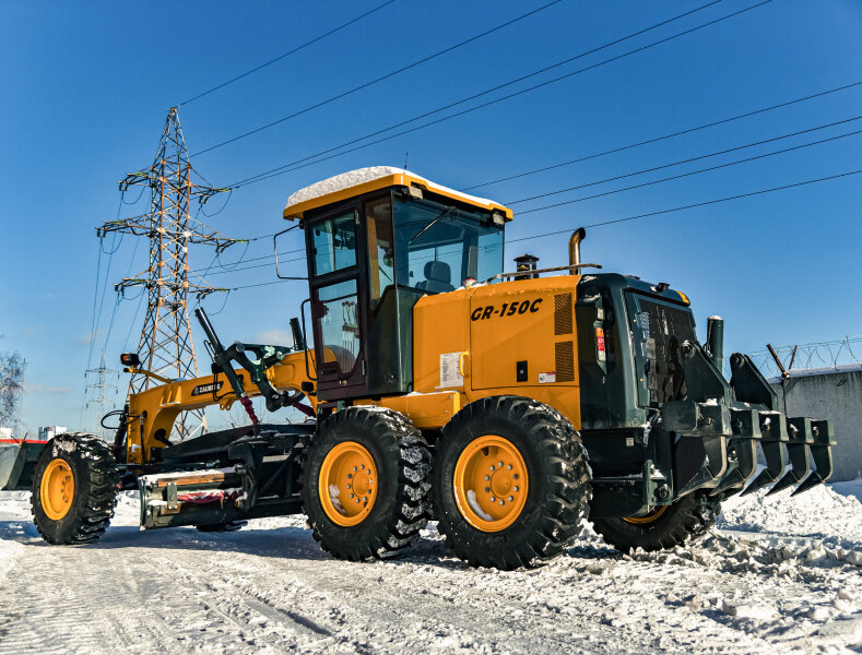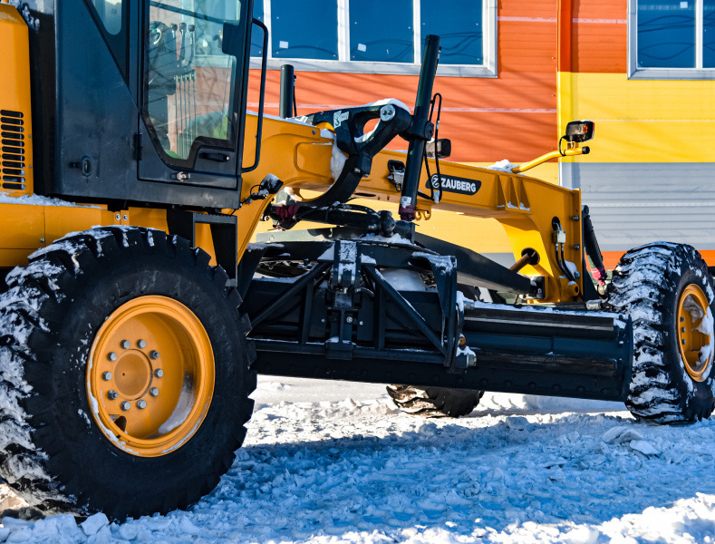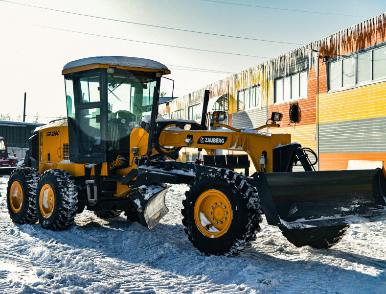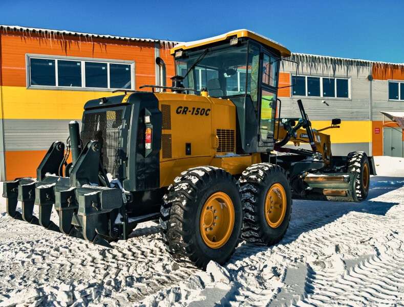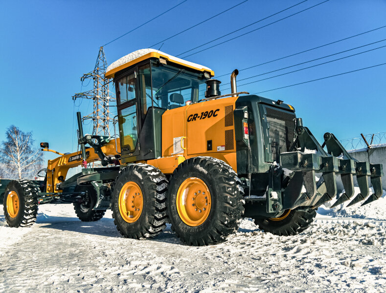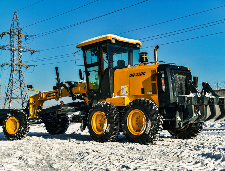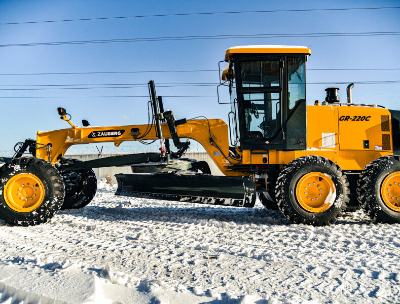 Автогрейдер для различных задач по дорожному строительству, земельным и сельскохозяйственным работам (очистка участков от снега, природного или бытового мусора, выравнивание и сооружение небольших траншей или насыпей).
